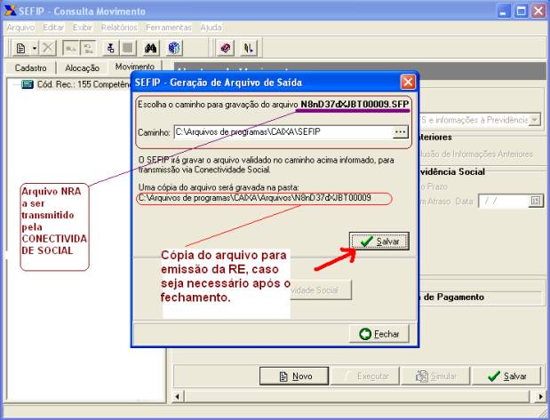 2. Alteração do nome do arquivo gerado pelo SEFIP de "SEFIP.SFP" para "NRA.SFP", onde NRA é o número do respectivo arquivo
